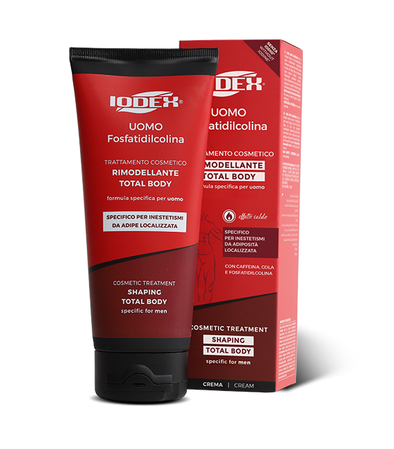 Trattamento rimodellante intensivo total body per contrastare linestetismo delle masse adipose* localizzate nei vari punti critici del corpo. Iodex Uomo F è il primo prodotto specifico a base di Fosfatidilcolina studiato per contrastare gli inestetismi cutanei dovuti alle masse adipose tipici dei tessuti maschili. Sfrutta le proprietà rimodellanti per cui è nota la fosfatidilcolina veicolata. Questa formulazione specifica sfrutta il meglio della natura e della tecnologia cosmetica usufruendo della sinergia di F-Lipobreak (fosfatidilcolina+lipostack) per rimodellare gli inestetismi dovuti alle masse adipose maschili localizzate in varie parti del corpo.