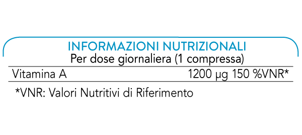 La Vitamina A contribuisce al benessere della capacità visiva, della pelle e delle mucose. Supporta il metabolismo del ferro e sostiene il sistema immunitario.
